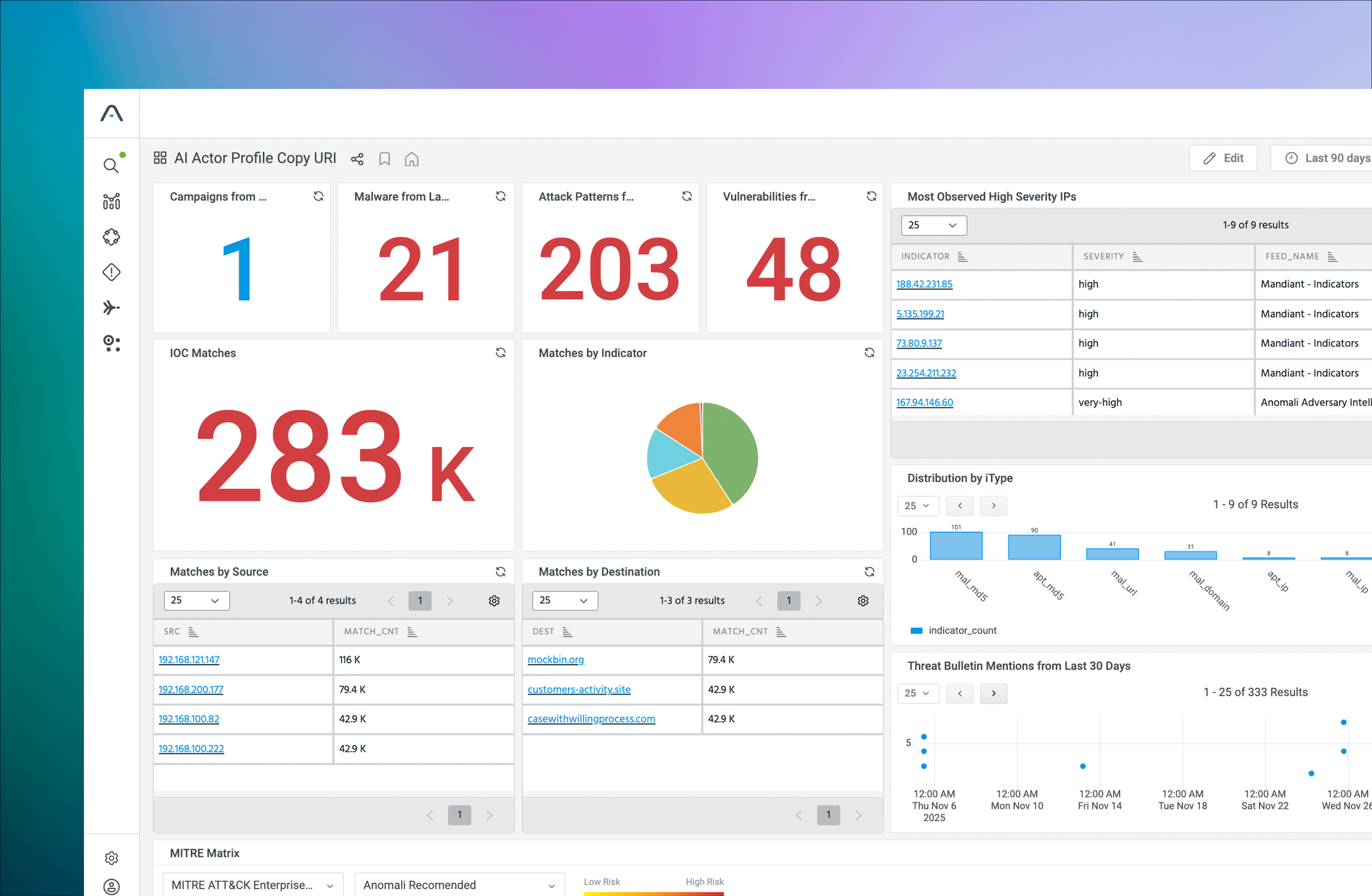 Combine analytics and intelligence to surface high-confidence threats.